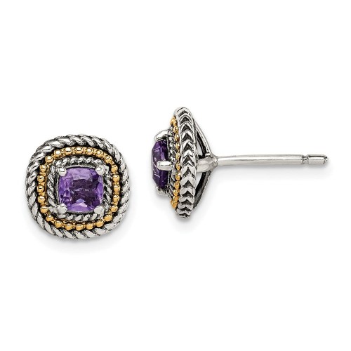 Shey Couture Sterling Silver with 14K Accent Antiqued Cushion Bezel Green Quartz Omega Back Earrings