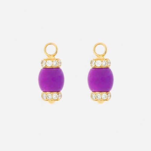 Radiating charm and versatility, these earrings combine the soft allure of pink jade with the brilliance of diamonds set in glowing 18KT yellow gold. Measuring 29mm in length, their removable drops allow for two distinct styles in one elegant design. Crafted with Italian precision, they are a graceful expression of luxury and creative artistry.