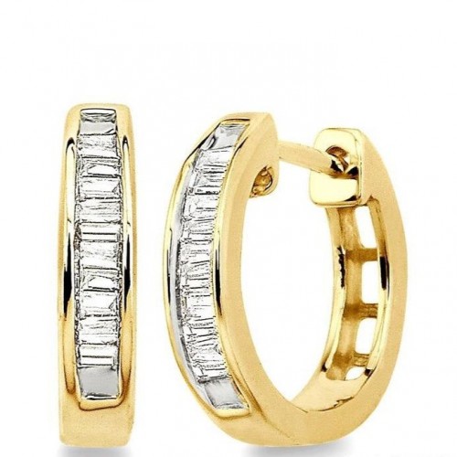 14K Yellow and White Gold Double Row Diamond Cut Hoop Earring