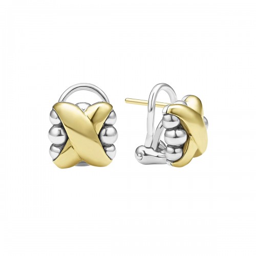 Crafted from high-quality sterling silver and accented with 18k yellow gold, these Two-Tone X Diamond Stud Earrings are a part of the Embrace collection and feature stunning diamonds as the primary gemstone.