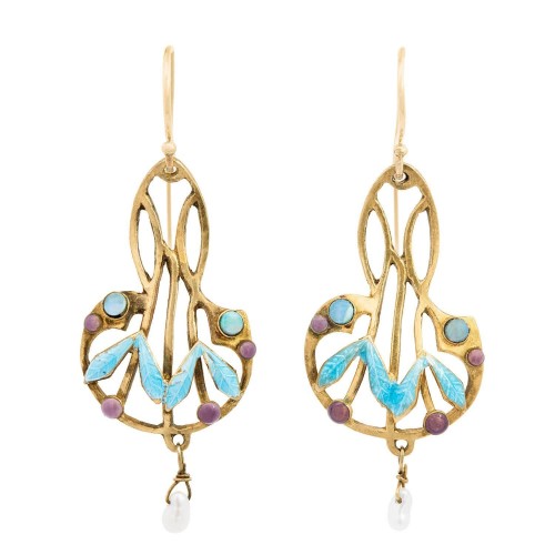 Measurements: Each earring hangs 1 3/4″ long, measures 3/4″ at the widest point, and is 1/8″ thick.
