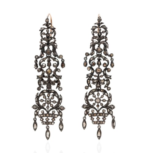 A one-of-a-kind set of Victorian (ca1880s) jewelry! This very unique set includes a pendant, a pair of dangling earrings, and two buttons. The pendant and earrings are crafted in 18kt yellow gold; the pendant is comprised of an enameled bail and setting holding a pearl above a spheroid-shaped lapis lazuli stone. The stone is held by a gold frame on its backside, and the enameling matches the natural stone perfectly! The earrings begin with 18kt yellow gold wires atop a spherical lapis lazuli stone. A pearl bead hangs below, along with a slightly larger lapis lazuli orb. The buttons are slightly smaller than the pendant and are set on gold-plated frames that slide into a buttonhole. All of the stones have a rich, ultramarine blue hue with lapis lazuli’s classic gold flecks and natural webbing. The set is accompanied by a fitted box, marked for its creator “L. Fontana & Cie Palais Royal 93 & 98 PRÈS LA ROTONDA PARIS”. A unique and striking set, this would be an incredible addition to a lapis lover’s collection!