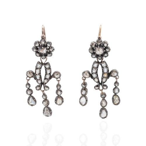 Measurements: The earrings hang 1 3/16″ in length including the earring wire. The earring design measures nearly 11/16″ tall, slightly more than 1/2″ wide, and less than 3/16″ deep. The pin measures 1 3/4″ wide, 1 1/8″ tall, and about 11/16″ deep excluding the pin mechanism.