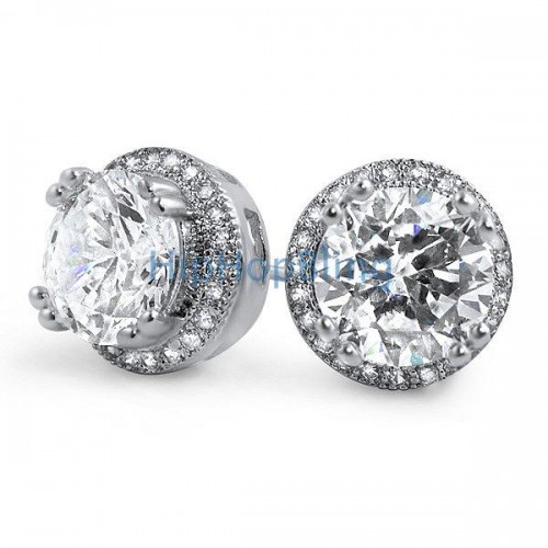 XL Rounded 3D Box Gold Micro Pave Bling Earrings