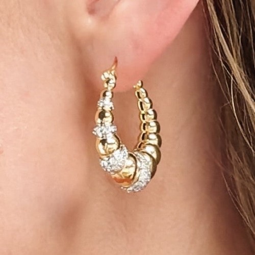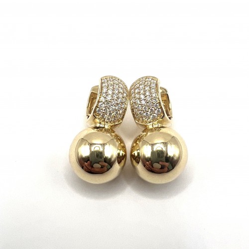 “Peyton” Pave Diamond Ball Huggie Earrings in 14K Yellow Gold