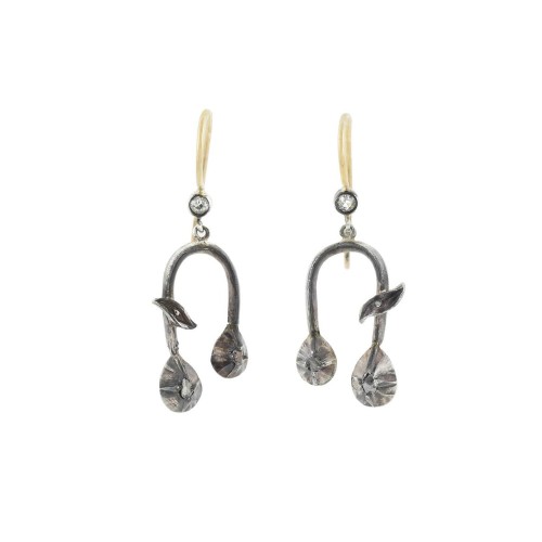 Victorian Sterling & 14kt French Paste Cluster Clip Earrings
