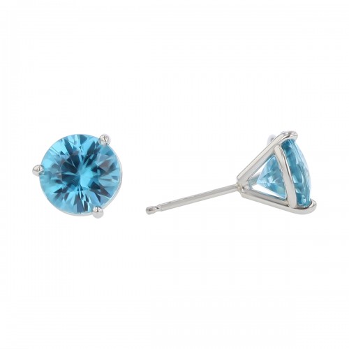 4.95ct Round Cambodian Blue Zircon Stud Earrings, In 14k White Gold