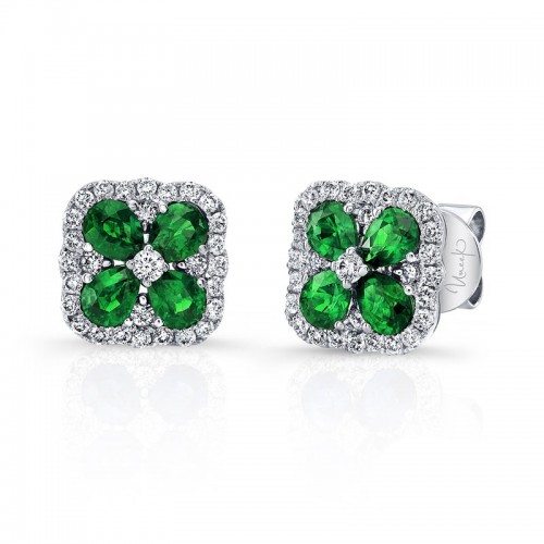 6.88ct Pear Shape Emerald, 2.25ct Pear Shape and Round Diamond Halo Drop Earring in 18K White Gold