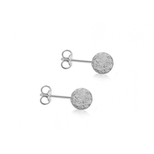 9CT WHITE GOLD 7.7MM DIAMOND CUT PYRAMID BUTTON STUD EARRINGS